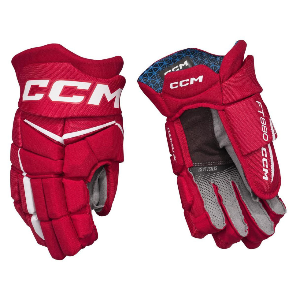 Rukavice navržené pro rychlou hru – CCM Jetspeed FT880 přináší špičkovou ochranu, nízkou hmotnost a okamžité pohodlí.