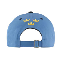 Tmavě modrá kšiltovka švédského národního hokejového týmu CCM Flag Sweden 3Krone SR s nastavitelnou velikostí pomocí látkového pásku a kovové přezky.